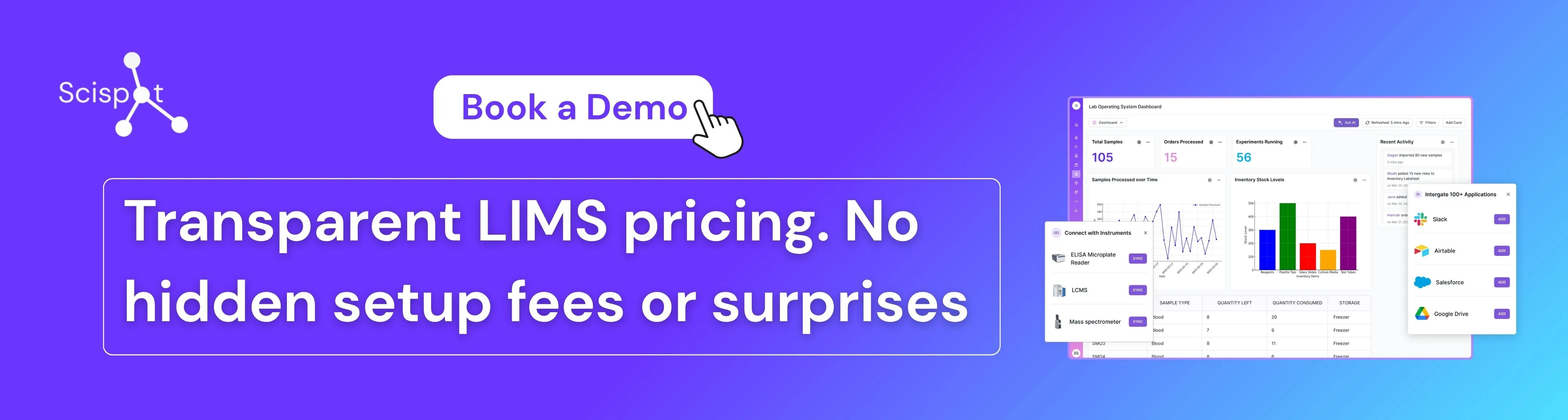 Ready to see how Scispot can streamline your lab operations while reducing costs? Book a personalized demo today and discover why hundreds of labs are making the switch to our unified platform.