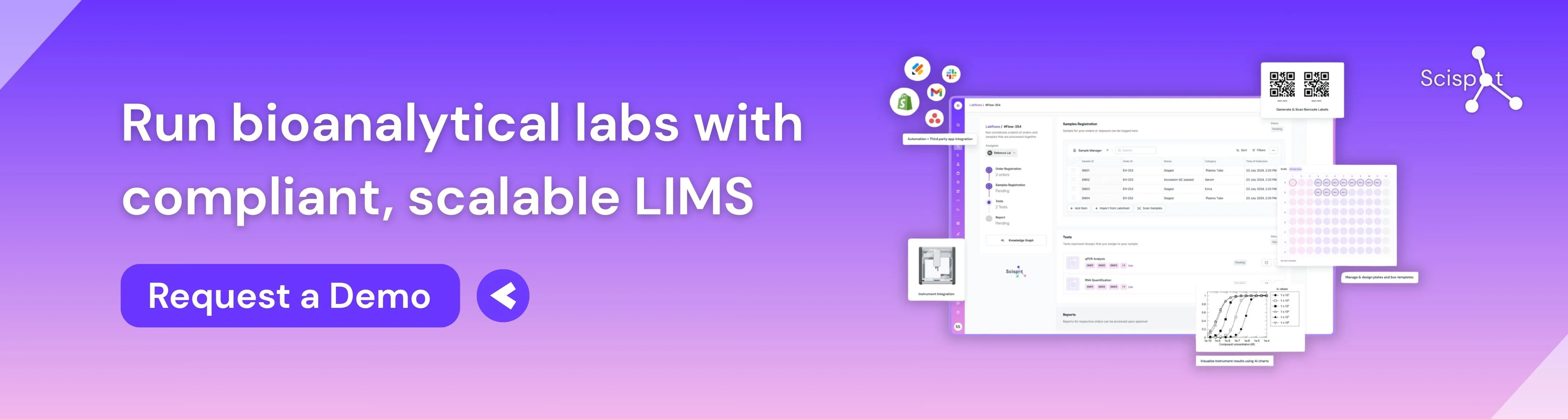While several vendors offer solutions for bioanalytical LIMS needs, Scispot stands out as the optimal choice for modern laboratories seeking efficiency without complexity. Its intuitive interface, seamless instrument integrations, and AI-powered automation address the specific challenges faced by bioanalysis labs without the implementation headaches and hidden costs associated with traditional vendors.
