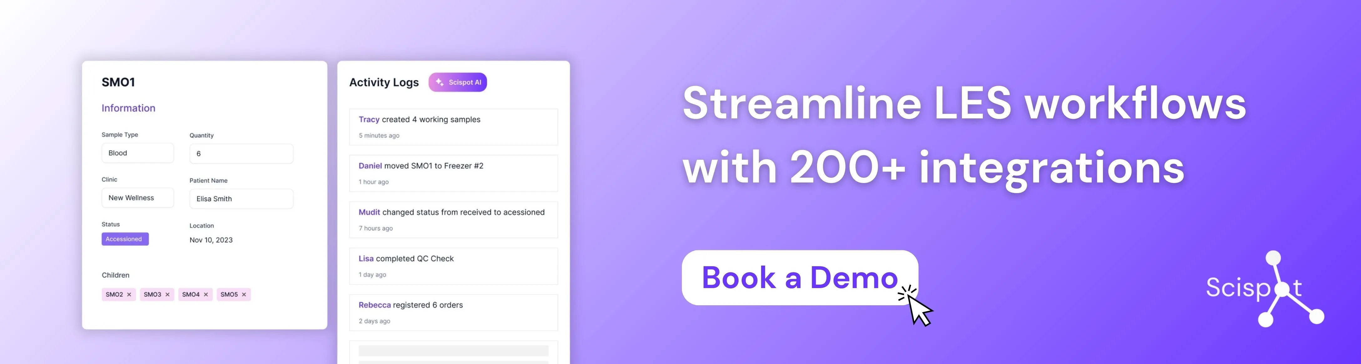 Scispot's LES module seamlessly integrates with its ELN, LIMS, and data management capabilities, providing a unified platform that eliminates the need for separate systems. With over 200 instrument integrations and connection to 7,000+ applications through its GLUE integration engine, Scispot ensures your LES software works within your existing ecosystem.